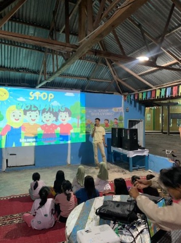 Minggu keempat ditutup dengan kegiatan sosialisasi bertema “Stop Bullying! Bersama Ciptakan Pertemanan yang Aman dan Menyenangkan” pada Sabtu malam (30/8/2025). Sosialisasi ini memberikan pemahaman kepada anak-anak mengenai apa itu bullying, bentuk-bentuknya, serta dampak buruk yang ditimbulkan bagi korban maupun pelaku. Dengan bahasa sederhana dan interaktif, mahasiswa mengajak anak-anak untuk selalu menghargai teman, menjauhi kata-kata kasar, serta menciptakan lingkungan pertemanan yang aman dan menyenangkan.