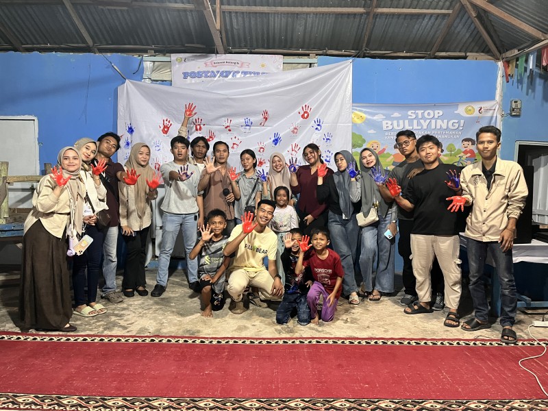 Sebagai penutup, mahasiswa bersama anak-anak melakukan simbolisasi komitmen bersama melawan bullying dengan cap tangan berwarna di atas spanduk polos. Setelah itu, masing-masing menuliskan nama di bawah cap tangan mereka. Aktivitas ini bukan hanya seremonial, tetapi juga menjadi pengingat bahwa setiap anak berhak tumbuh dalam lingkungan yang penuh kasih dan bebas dari perundungan.