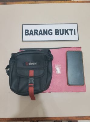 Dari penggeledahan, polisi menyita satu bungkus plastik klip berisi sabu seberat 1,28 gram bruto, satu unit ponsel Oppo biru, satu bong, satu skop dari pipet, satu kaca pireks, dan satu mancis merah. Semua peralatan itu diduga digunakan untuk mengonsumsi barang haram tersebut.