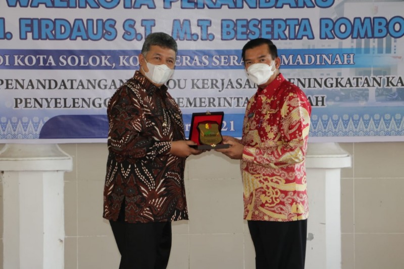 Walikota Solok Zul Elfian menyampaikan ucapan syukur dan kebahagiaan tersendiri serta sebuah kehormatan bagi Pemerintah Kota Solok atas kehadiran Walikota Pekanbaru beserta jajaran.