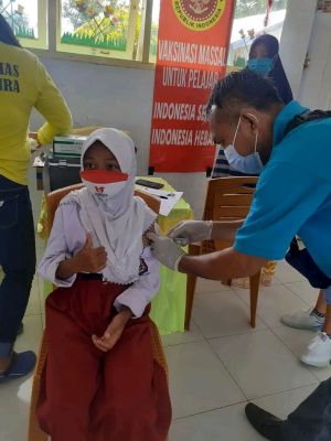 SIGAPNEWS | PEKANBARU - Pemberian vaksin Covid-19 bagi anak -anak di Kota Pekanbaru resmi bergulir, Jumat (7/1). Proses pemberian vaksin anak untuk pertama kalinya berlangsung di SD Al Azhar Syifa Budi, Jalan Arifin Achmad.