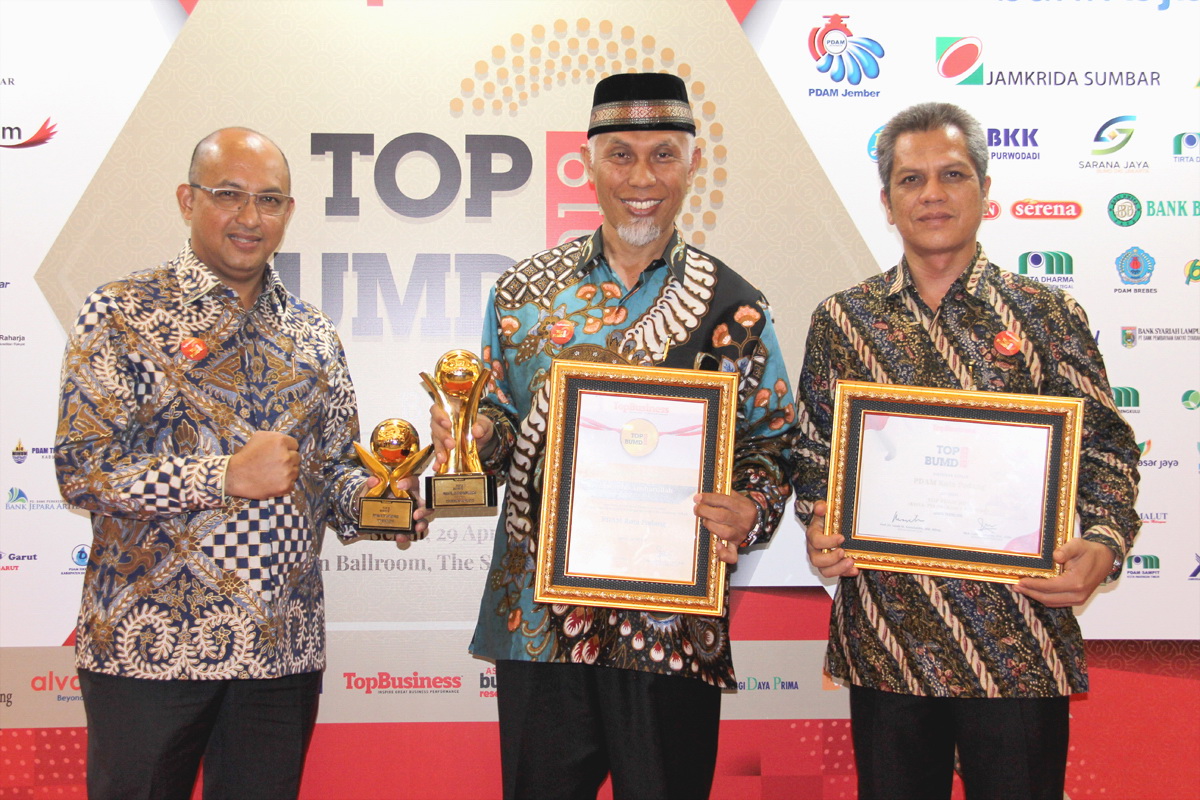 Dirut PDAM Hendra Pebrizal, S.Sos, MM saat menerima pernghargaan sebagai Top CEO BUMD 2019 |