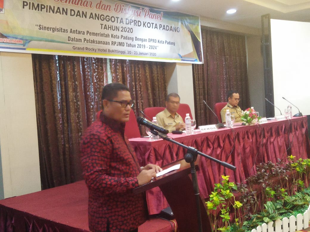 Seluruh anggota DPRD Kota Padang mengikuti seminar dan diskusi panel dengan tema "Sinergisitas Antara Pemerintah Kota Padang dengan DPRD Kota Padang dalam Pelaksanaan RPJMD tahun 2019-2024" di Bukittinggi, Selasa, 21/1/2020).