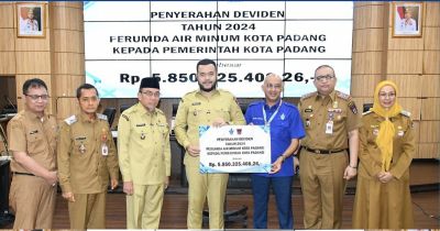 Perumda Air Minum Kota Padang Serahkan Dividen Rp5,8 Miliar ke Pemko Padang