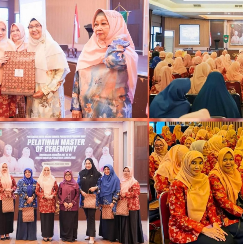 PEKANBARU - Darma Wanita Persatuan (DWP) Provinsi Riau menggelar pelatihan Master of Ceremony (MC) bagi pengurus DWP unit pelaksana di seluruh OPD Pemprov Riau dan kabupaten/kota se-Riau di Gedung Wanita, Selasa (28/10/2025).