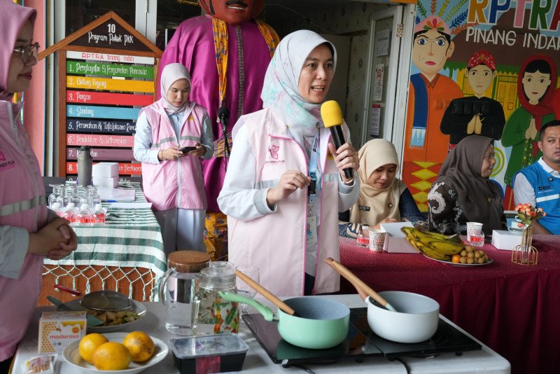 PT PLN Mandau Cipta Tenaga Nusantara (PLN MCTN) menghadirkan demo pembuatan minuman sehat menggunakan kompor listrik di RPTRA Pinang Indah, Pondok Pinang, Jakarta Selatan, Kamis (23/4/26)