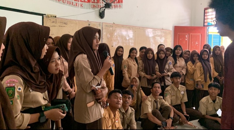 Mahasiswa KKN Universitas Abdurrab kelompok 24 melaksanakan sosialisasi di SMA Negeri 1 Sinaboi.