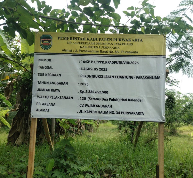 Proyek tersebut mengacu pada Surat Perintah Kerja Nomor 16/SP-PJJ/PPK-KPADPUTR/VIII/2025 tanggal 24 Agustus 2025, dengan waktu pengerjaan 120 hari kalender dan total pembiayaan Rp2.335.625.900.