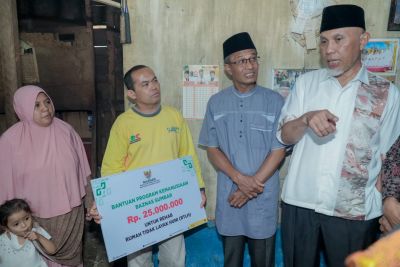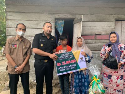 "Alhamdulillah, kami hadir hari ini bisa langsung bertemu dengan ibu sekaligus menyerahkan bantuan bedah rumah untuk keluarga ini," ujar Mahyeldi.