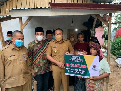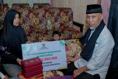 "Kami hadir di sini untuk menyerahkan bantuan bedah rumah tidak layak huni yang didanai dari Baznas sebesar Rp25 juta. Mudah-mudahan dengan bantuan ini, ibu Nurmaini bisa memperbaiki rumahnya," ungkap Mahyeldi.