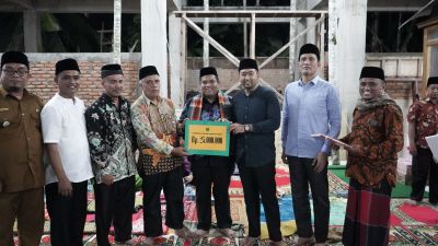 Gubernur Mahyeldi melakukan singgah sahur salurkan bantuan bedah rumah di Korong Kampuang Tangah Nagari Buayan Lubuk Alung, Jumat dini hari (14/3/2025).